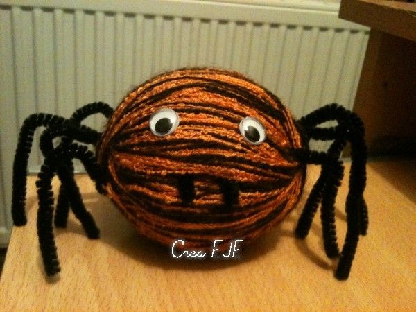 Voici une araignée en laine qui s'associe très bien au thème d'Halloween.